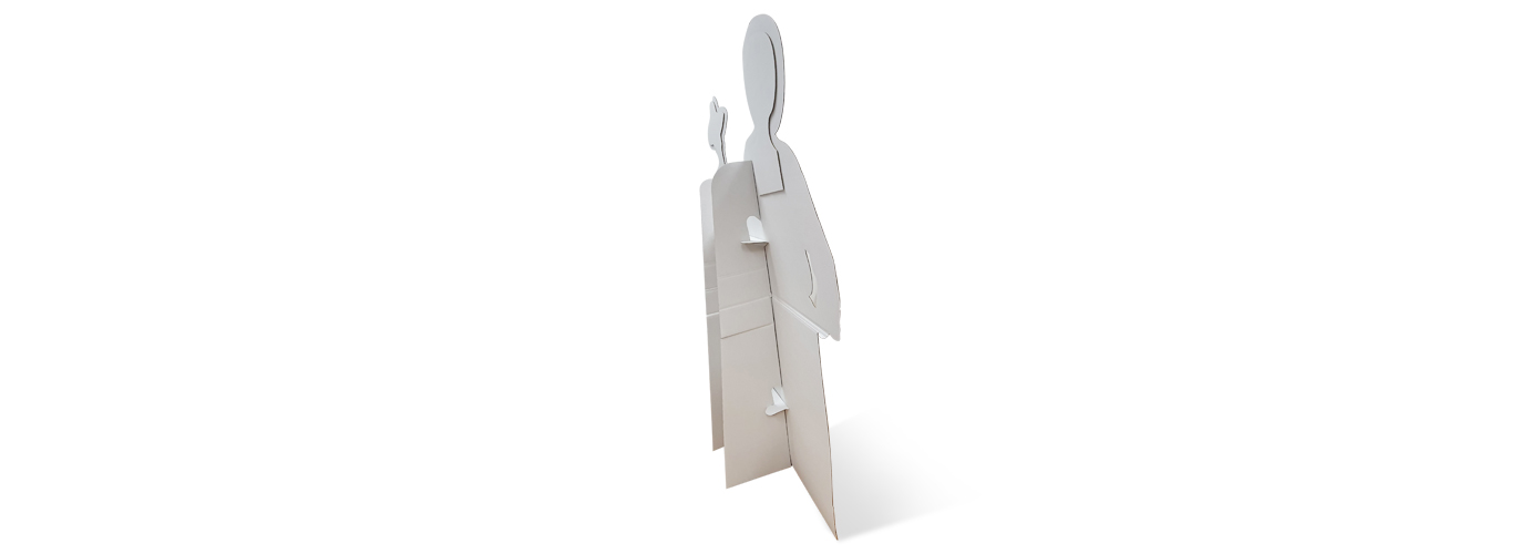 - formgeschnittener Figuraufsteller mit Rückenstütze- Rückansicht