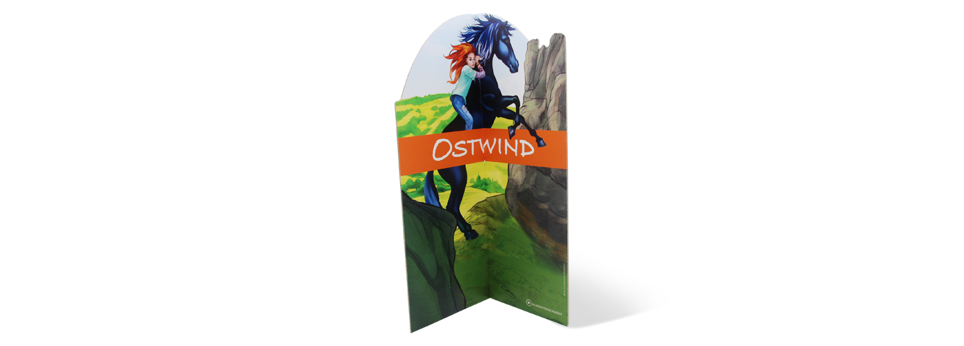 - formgestanzter Figuraufsteller beidseitig bedruckt aus Forex
