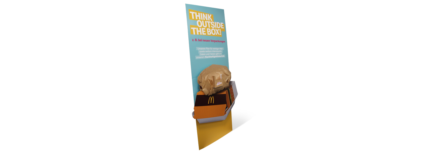 Vorderseitig können Sie Dispenser für Werbeflyer oder Produkte einbauen. Für einen optimalen Versand wird der Aufsteller mittig zusammengeklappt. Dabei bleiben das rückseitige Aufstellersystem erhalten und kann platzsparend verpackt werden. So werden gerade bei umfangreichen Kampagnen Kosten gering gehalten.