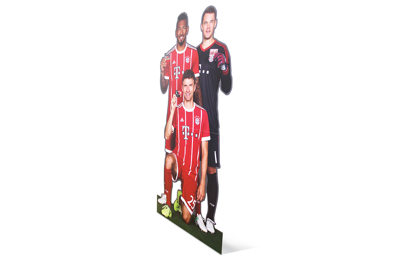 Erfolgreich können Sie prominente Werbeträger in lebensgroßer Abbildung neben den Kunden im Markt aufbauen.