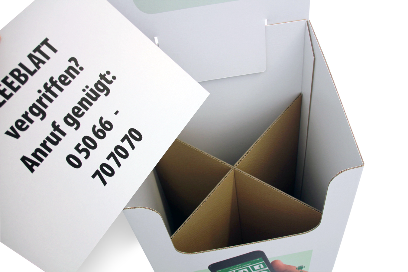 - Bodendisplay für Zeitungen, EE-Welle, inkl. Innenkreuz aus EB-Welle- Details